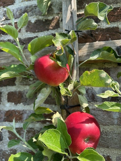 De fruitbomen bevinden zich nu in de moestuin met leifruit van oude fruitrassen.