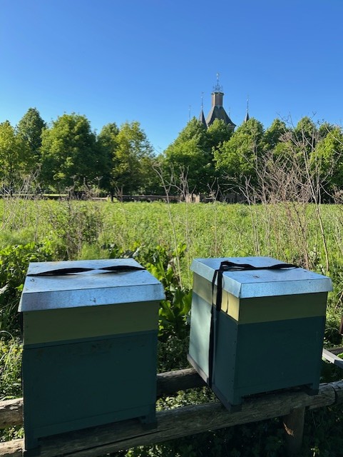 Onze imker Ilse heeft haar bijenkasten hier staan en produceert prachtige, milde honing.